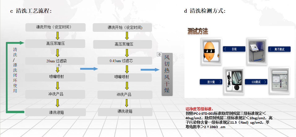 5、全面的清洗系統:標配的稀釋液槽\漂洗水槽加熱系統,提升了清洗效率,縮短清洗時間,兼容運行水洗或化學清洗,針對SMT;THT的PCBA表面殘留的松香、焊音等有機、無機污染物進行徹底有效的清洗;